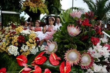For those who would like to visit Madeira for the Flower Festival, please call our reservations office as early as possible, since it is THE most popular time to visit. Whether self catering, a 3 star hotel or 5 star deluxe, you'll have the opportunity of enjoying the Festival, and perhaps taking in some of the wealth of other botanical splendors during your stay, be it a few days or a few weeks. Prices for this period inevitably are higher than most other dates. The Adult and Children's parade as usual cover the Saturday and Sunday. Charter Flights normally arrive on the Monday prior, and 7 night stays depart on the Monday after the festivities. Other days are also possible using No-frills and scheduled carriers, but may incur a supplement, especially for late bookings.